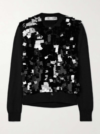 EDITORS'NOTES Comme des Garcons Comme des Garcons's cardigan is hand-embellished with oversized square paillettes that beautifully reflect light. It's knitted from black wool and has a slightly loose fit. Wear yours on its own or layered over a tailored shirt. SIZE & FIT Model measurements: - Size 1 = XS, 2 = S, 3 = M, 4 = L and 5 = XL - Fits true to size, take your normal size - Designed for a slightly loose fit - Lightweight knit - Model is 177cm/ 5'10" and is wearing the designer's size 1 - Bust: 80cm/ 31.5" - Waist: 65cm/ 25.5" - Hip: 91cm/ 36" DETAILS & CARE - Black wool - Button fastenings through front - 100% wool - Dry clean