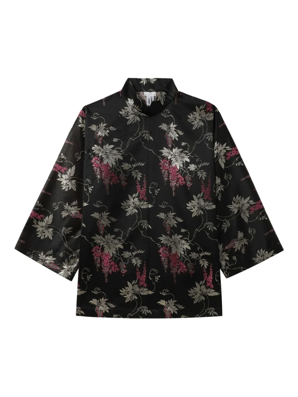 floral-print mandarin-collar blouse Highlights - Black - Floral pattern - Mandarin collar - Three-quarter sleeves Imported Composition Polyester 100% Washing instructions Hand Wash