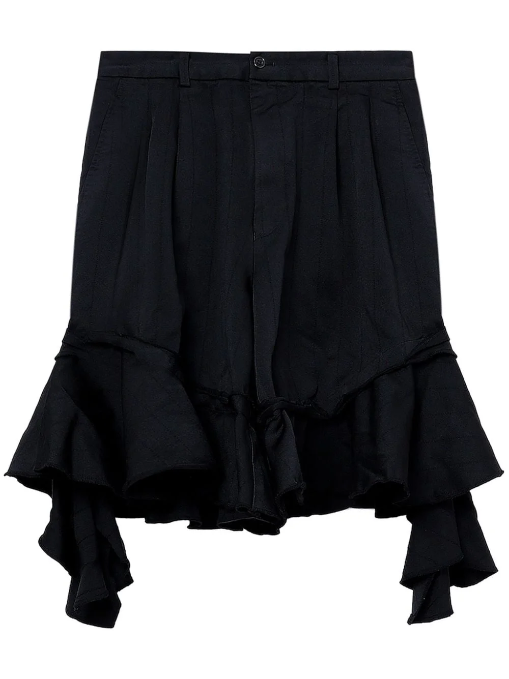 pleated ruffled shorts Highlights - Black - Pleat detailing - Belt loops - Concealed fly and button fastening - Two side slash pockets - Rear flap pocket - Rear welt pocket - Ruffle hem Imported Composition Polyester 100%