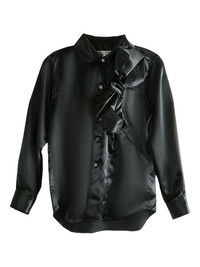 satin ruffled blouse Highlights - Black - Satin fabric - Ruffled embellishment - Button fastening - Long sleeves - Collared neckline Imported Composition Polyester 100% Washing instructions Read Manufacturer Guidelines