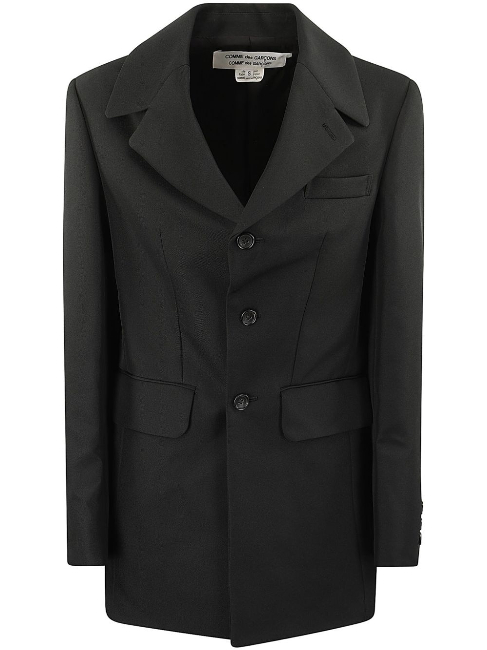 button-down blazer Highlights - Black - Front button fastening - Notched lapels - Chest welt pocket - Two front flap pockets - Long sleeves - Buttoned-cuff sleeves - Straight hem Imported Composition Outer: Polyester 100% Lining: Cupro 100%