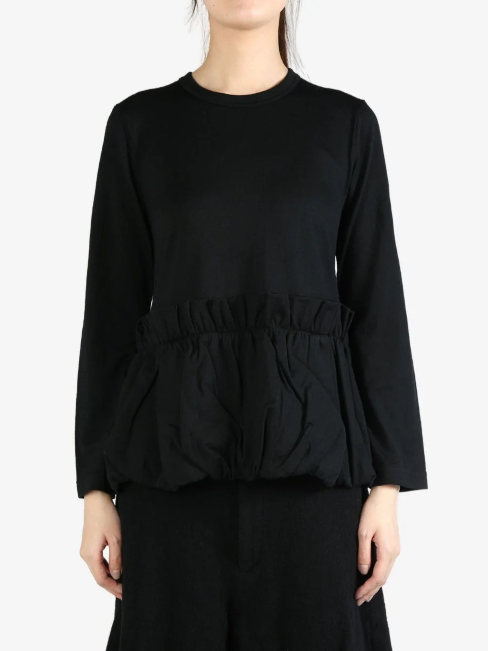 draped hem blouse Highlights - Black - Crew neck - Draped design Imported Composition Wool 100%
