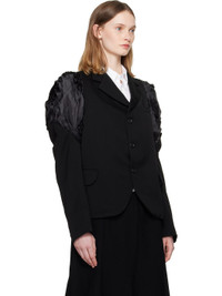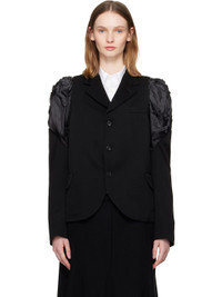 Wool twill blazer. · Notched lapel · Button closure · Welt pocket at chest · Flap pockets at waist · Satin ruffles with raw edges at shoulders · Surgeon's cuffs · Full satin lining Supplier color: Black Body: 100% wool. Trim: 100% polyester. Lining: 100% cupro. Made in Japan 252671F057011