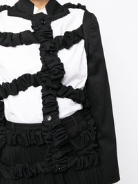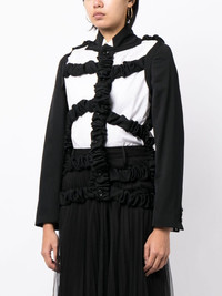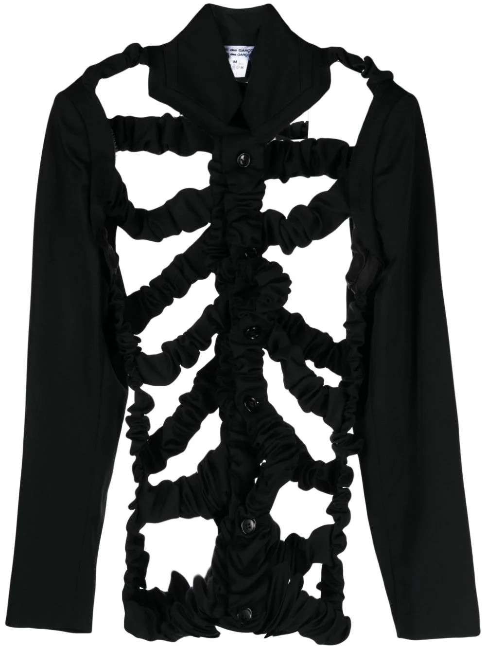 cut-out detail buttoned jacket Highlights - Black - Wool - Cut-out detailing - Ruched detailing - Elasticated panelling - Long sleeves - Front button fastening Imported Composition Lining: Cupro 100% Outer: Wool 100% SIZE & FIT Model measurements Height 5 ft 10 in(1.77 m) Bust/Chest 31.49 in(80 cm) Hips 35.43 in(90 cm) Waist 25.19 in(64 cm) FittingInformation Designed for a slim fit that sits just away from the body offering a close yet comfortable fit Made from a midweight non-stretch fabric This piece fits true to size – take your usual size Washing instructions Dry Clean Only