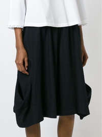 flared asymmetric skirt Black wool flared asymmetric skirt from Comme Des Garcons Comme Des Garcons. Imported Composition Wool 100% SIZE & FIT Model measurements Height 5 ft 11 in(1.8 m) Bust/Chest 31.49 in(80 cm) Hips 35.82 in(91 cm) Waist 24.8 in(63 cm) Washing instructions Dry Clean Only