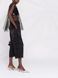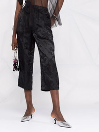 floral-jacquard cropped trousers black elasticated waistband two side slit pockets full jacquard cropped leg Imported Composition Rayon 50%, Polyester 50% SIZE & FIT Model measurements Height 5 ft 11 in(1.8 m) Bust/Chest 32.67 in(83 cm) Hips 36.22 in(92 cm) Waist 24.4 in(62 cm) FittingInformation This piece fits true to size. We recommend you get your regular size Designed to be fitted at the waist, loose over the leg Made with a mid-weight non-stretch fabric Washing instructions Hand Wash