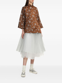 floral-print blouse Highlights - Brown - All-over floral print - Mock neck - Three-quarter length sleeves Imported Composition Polyester 100% Washing instructions Read Manufacturer Guidelines