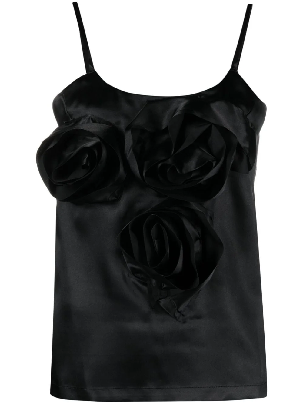 floral-applique ruched tank top Highlights - Black - Floral applique - Ruched detailing - Round neck - Spaghetti straps - Sleeveless - Straight hem Imported Composition Polyester 100% SIZE & FIT Model measurements Height 5 ft 11 in(1.8 m) Bust/Chest 35.03 in(89 cm) Hips 35.03 in(89 cm) Waist 23.62 in(60 cm) Measurement LENGTH 22.04 in(56 cm) WAIST 29.92 in(76 cm) BUST 31.49 in(80 cm) FittingInformation Designed to be unstructured, offering a loose fit throughout Made from a midweight non-stretch fabric, this piece offers minimal elasticity when worn This piece fits true to size – take your usual size Washing instructions Hand Wash