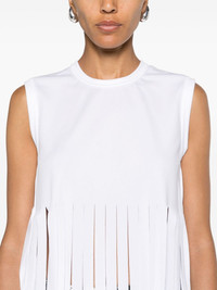 fringed jersey tank top Highlights - White - Technical jersey - Textured finish - Crew neck - Sleeveless - Fringed edge Imported Composition Polyester 100% Washing instructions Hand Wash