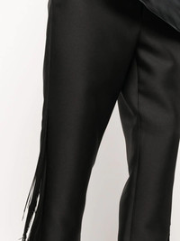 fringed straight-leg tailored trousers black tailored cut straight leg fringe detailing high-waisted Imported Composition Polyester 100% SIZE & FIT Model measurements Height 5 ft 10 in(1.77 m) Bust/Chest 33.85 in(86 cm) Hips 35.03 in(89 cm) Waist 24.01 in(61 cm) Washing instructions Dry Clean Only