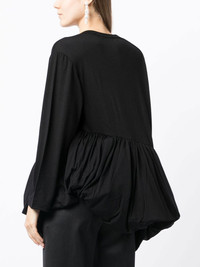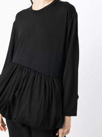 gathered-hem detail blouse jet black wool gathered detailing round neck long sleeves Imported Composition Wool 100% SIZE & FIT Model measurements Height 5 ft 11 in(1.8 m) Bust/Chest 28.34 in(72 cm) Hips 35.43 in(90 cm) Waist 23.62 in(60 cm) FittingInformation This piece fits true to size. We recommend you get your regular size Cut for a loose fit Made with a mid-weight fabric Washing instructions Dry Clean Only