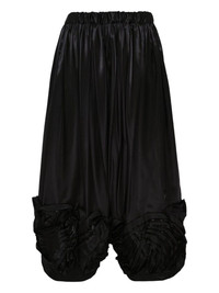 gathered-trim trousers Highlights - Black - Gathered detail - Elasticated waistband - Satin finish - Ankle length Imported Composition Fabric 100% Washing instructions Read Manufacturer Guidelines
