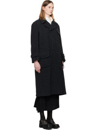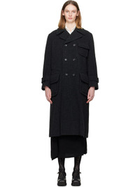 Insulated wool-blend melton coat. · Notched lapel · Double-breasted button closure · Flap pockets at front · Adjustable button tab at cuffs · Full satin lining Supplier color: Charcoal Body: 90% wool, 10% nylon. Fill: 100% polyester. Lining: 100% cupro. Made in Japan 252671F059002