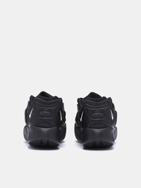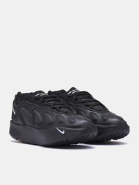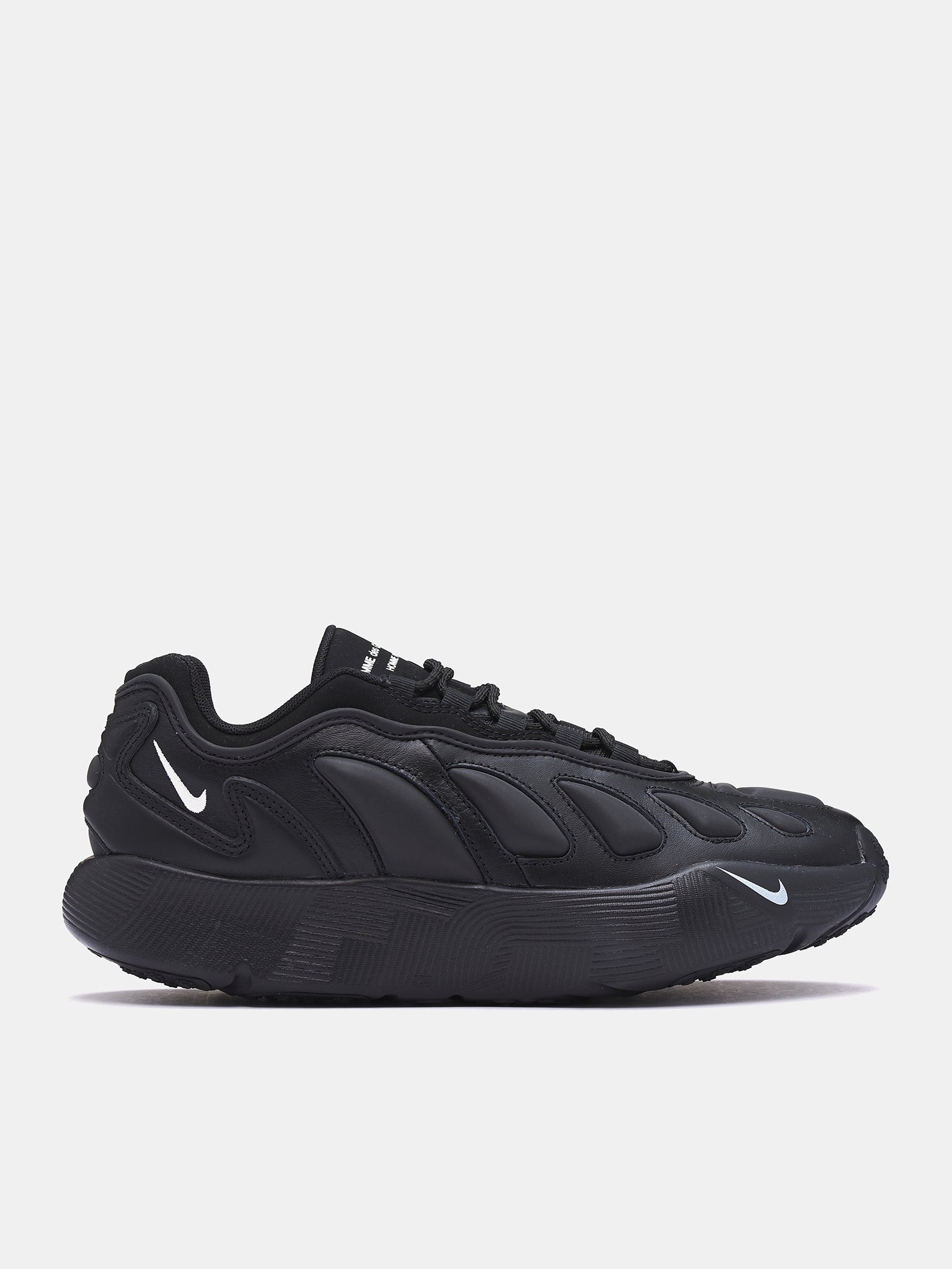 CDG Homme Plus x Nike shoes in black, synthetic & textile upper construction, signature Swoosh motif throughout, low-top. A hybrid with the upper of the Nike Air Max 96 reimagined with a new wave-textured sole. Imported Upper: 100% Synthetic Sole: 100% Rubber Men's US Sizing
