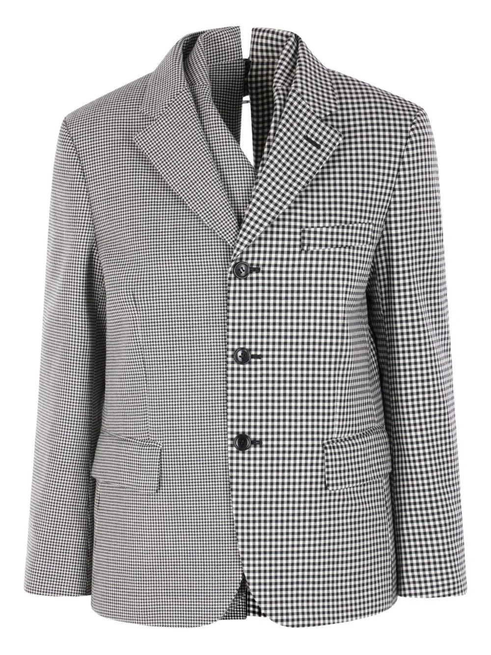 single-breasted blazer Highlights - White and black - Button fastening - Rear buckle detail - Long sleeves - Front pockets - Shepherd check pattern - Houndstooth pattern Imported Composition Wool 100% Washing instructions Read Manufacturer Guidelines