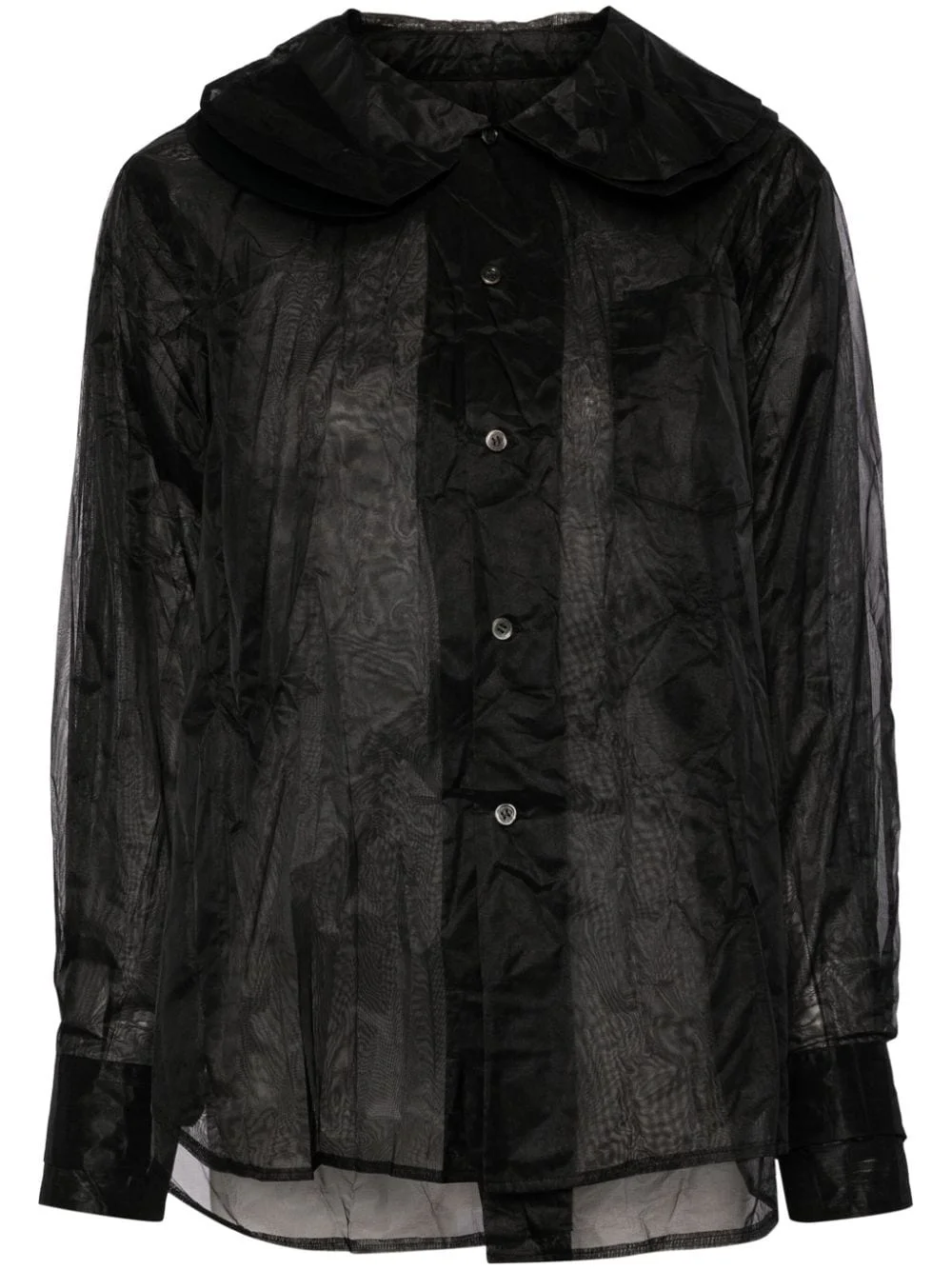 layered shirt Highlights - Black - Organza - Crease effect - Semi-sheer construction - Front button fastening - Layered design - Peter pan collar - Drop shoulder - Long sleeves - Buttoned cuffs - Chest patch pocket - Curved hem Imported Composition Nylon 100%