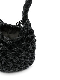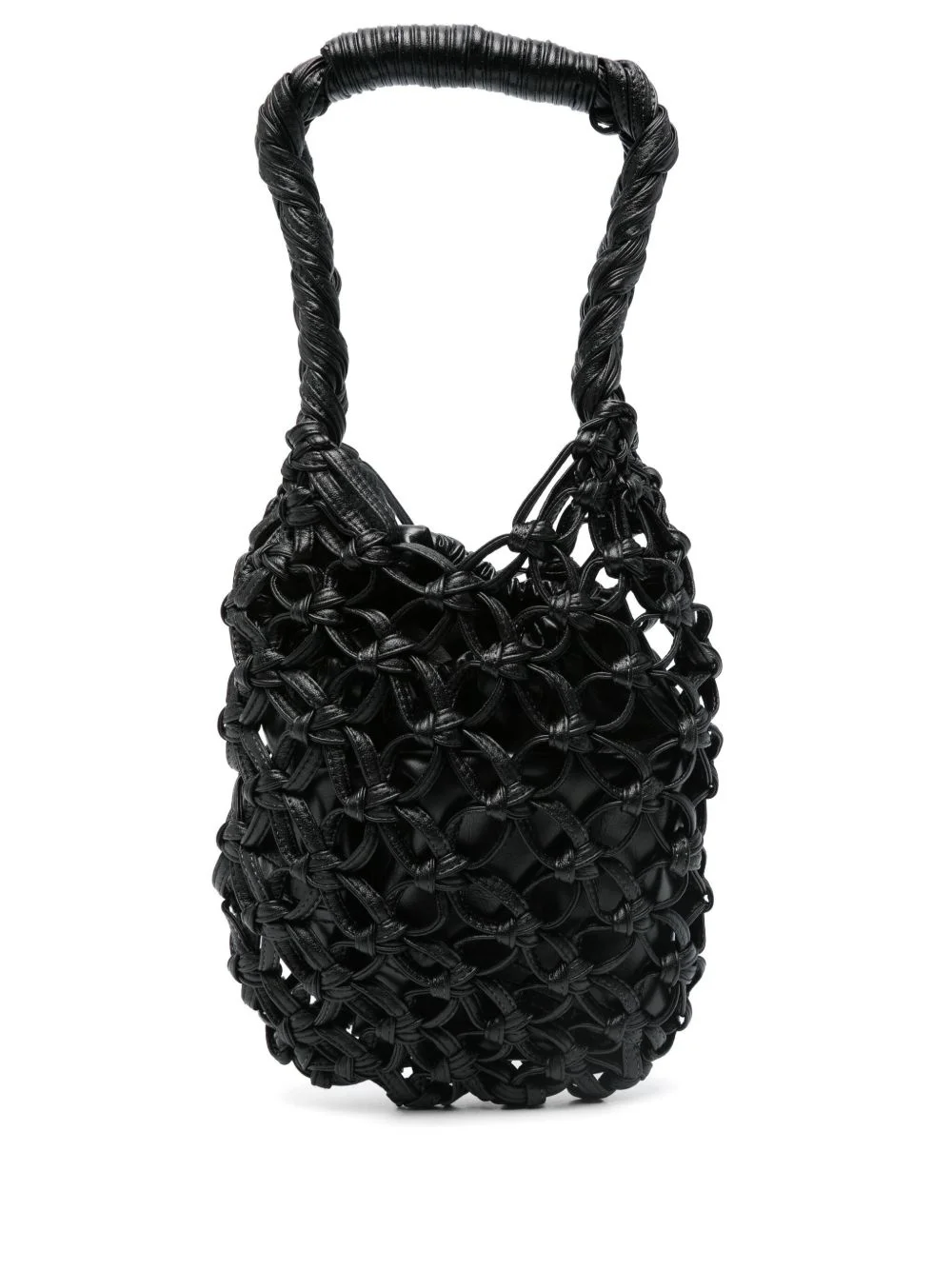 openwork tote bag Highlights - Black - Top drawstring fastening - Single braided top handle - Knot detailing Imported Composition Lining: Cupro 80%, Nylon 20% Outer: Polyurethane 100% SIZE & FIT Model measurements Height 5 ft 10 in(1.77 m) Bust/Chest 32.28 in(82 cm) Hips 35.03 in(89 cm) Waist 25.19 in(64 cm) Measurement DEPTH 1.96 in(5 cm) HANDLE 7.08 in(18 cm) HEIGHT 7.87 in(20 cm) WIDTH 7.08 in(18 cm)