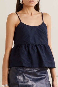 EDITORS'NOTES Comme des Garçons Comme des Garçons' minimalist camisole is designed with a ruffled peplum hem that adds volume to the relaxed shape. It's made from lightweight Oxford cloth and has slim straps. Wear it with leather separates or jeans. SIZE & FIT - Fits true to size, however those who are between sizes should take the smaller size - Designed for a relaxed fit - Lightweight, non-stretchy fabric - Model is 175cm/ 5'9" and is wearing a size Small DETAILS & CARE - Black Oxford - Concealed hook and zip fastening at back - 100% polyester - Hand wash