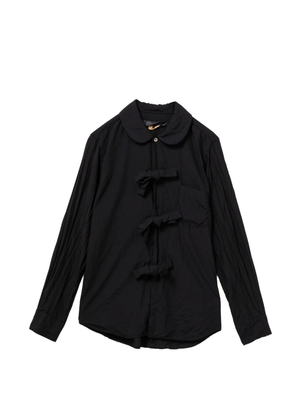 peter pan collar shirt Highlights - Black - Peter pan collar - Button fastening - Bow detail - Chest pocket - Long sleeves Imported Composition Polyester 100% Washing instructions Hand Wash