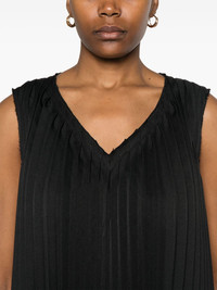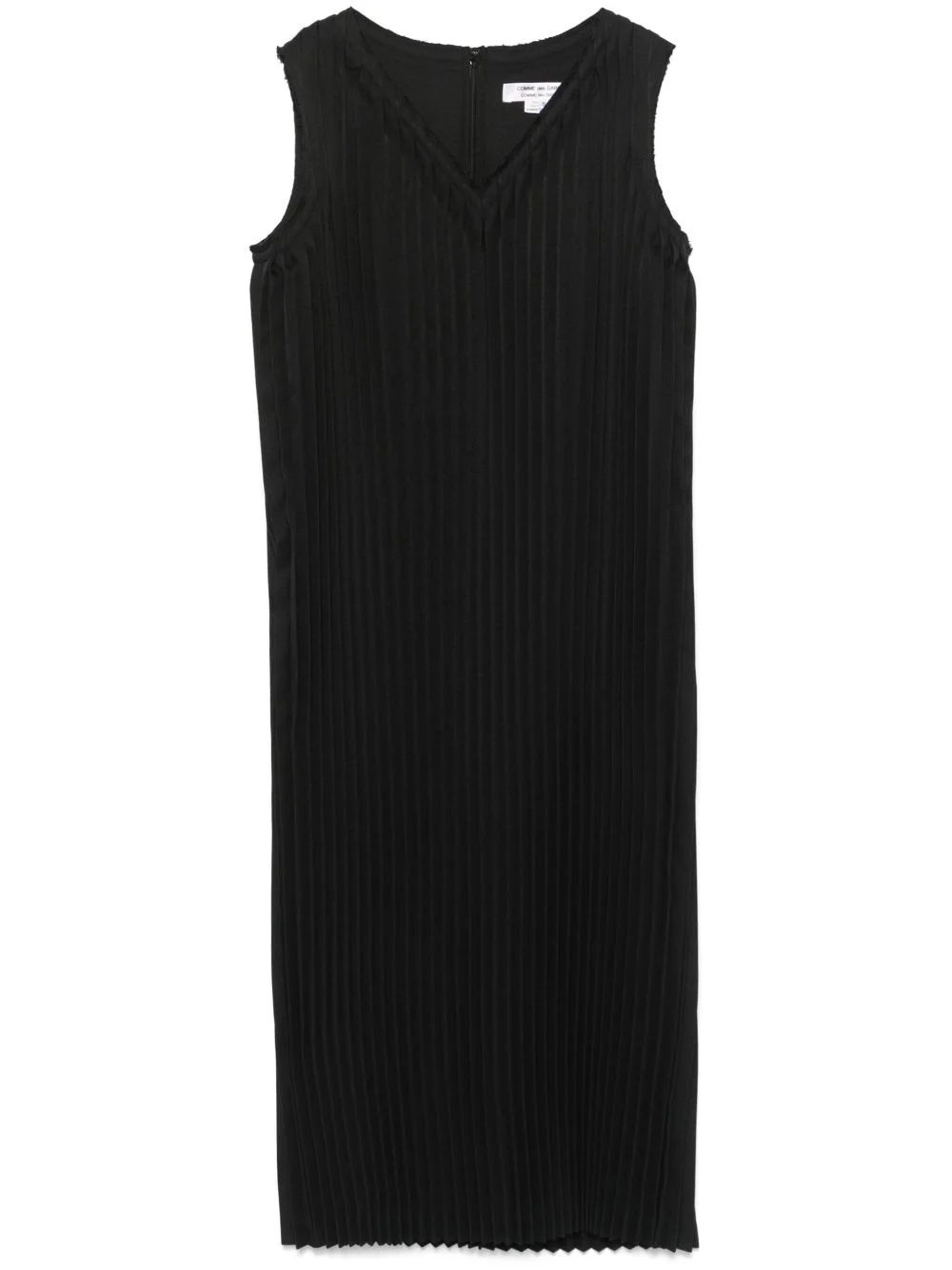 pleated midi dress Highlights - Black - Concealed rear hook and zip fastening - Two side inset pockets - V-neck - Raw-cut edge Imported Composition Polyester 100% SIZE & FIT Model measurements Height 5 ft 11 in(1.8 m) Bust/Chest 31.49 in(80 cm) Hips 36.61 in(93 cm) Waist 24.4 in(62 cm) FittingInformation Designed to be unstructured, offering a loose fit throughout Made from a midweight non-stretch fabric