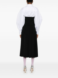 pleated midi dress Highlights - Black - Wool - Twill weave - Pleated skirt - Double-breasted button fastening - Off-centre front zip fastening - Square neck - Strapless - Boned bodice - Belted waist - Two side inset pockets - Unlined - Straight hem - Mid-length Imported Composition Lining: Cupro 100% Outer: Wool 100% SIZE & FIT Model measurements Height 5 ft 11 in(1.8 m) Bust/Chest 31.49 in(80 cm) Hips 36.61 in(93 cm) Waist 24.4 in(62 cm)