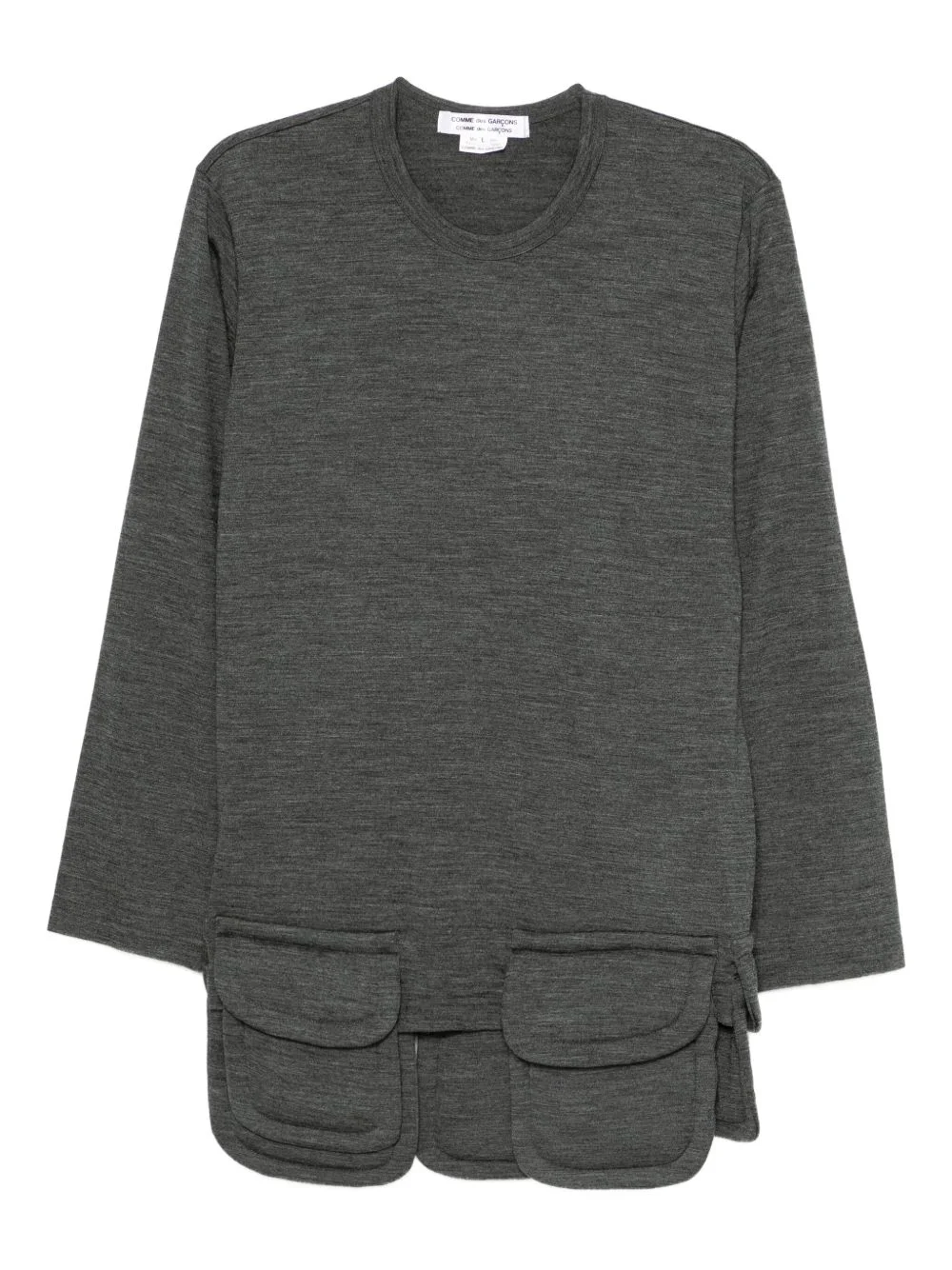 multi-pocket T-shirt Highlights - Smoke grey - Multiple flap pockets - Crew neck - Long sleeves Imported Composition Wool 100% Washing instructions Dry Clean Only