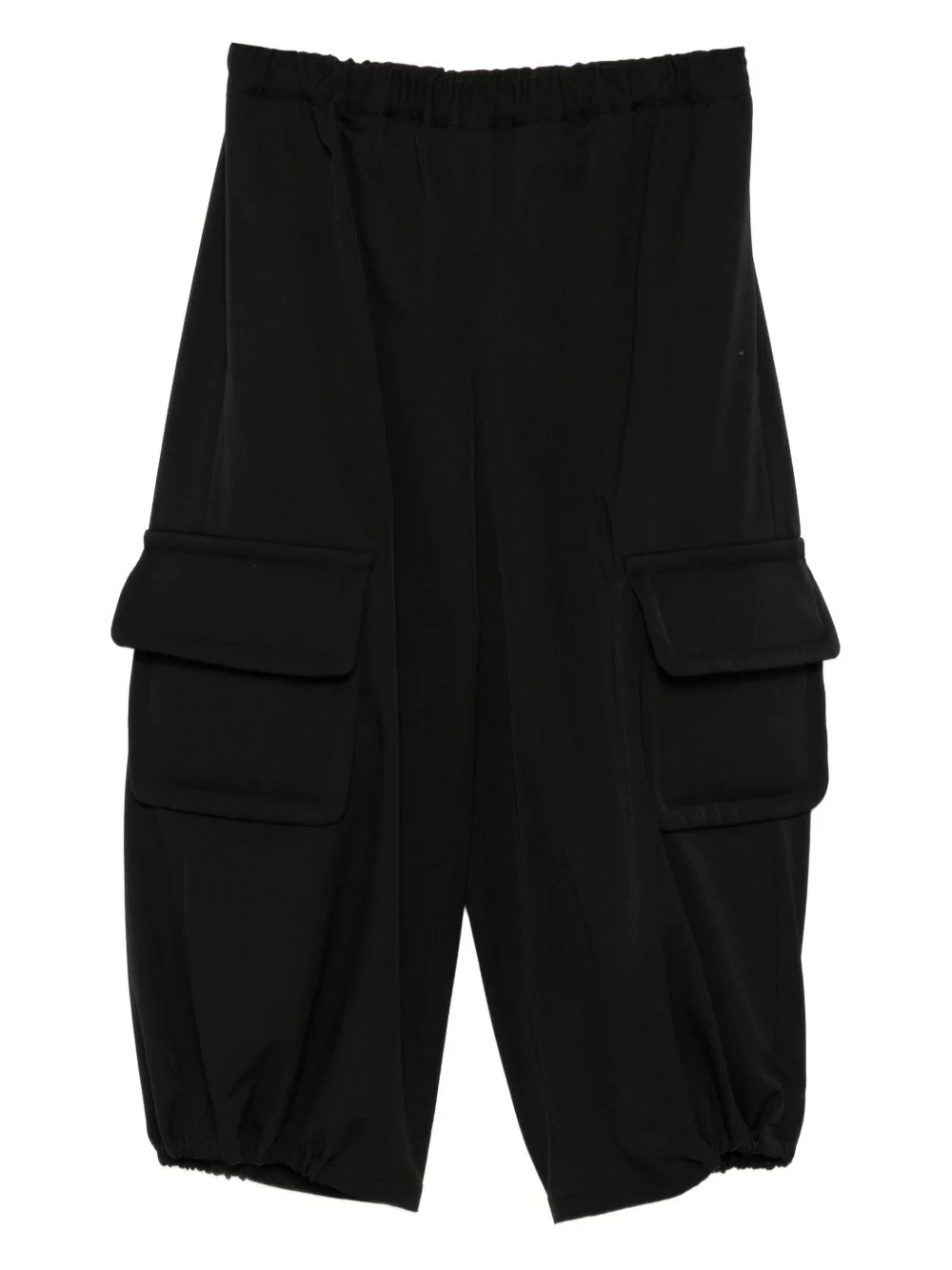wool trousers Highlights - Black - Elasticated waistband - Two side inset pockets - Two side cargo pockets Imported Composition Polyester 100% Outer: Wool 100% SIZE & FIT Model measurements Height 5 ft 10 in(1.78 m) Bust/Chest 31.88 in(81 cm) Hips 37 in(94 cm) Waist 25.19 in(64 cm) FittingInformation Designed with a wide-leg cut, these trousers allow for a close fit at the waist and offer a loose and roomy fit over the leg Adjust this piece’s waistband to your preference using the drawstring Made from a padded non-stretch fabric, giving it no natural elasticity Washing instructions Dry Clean Only