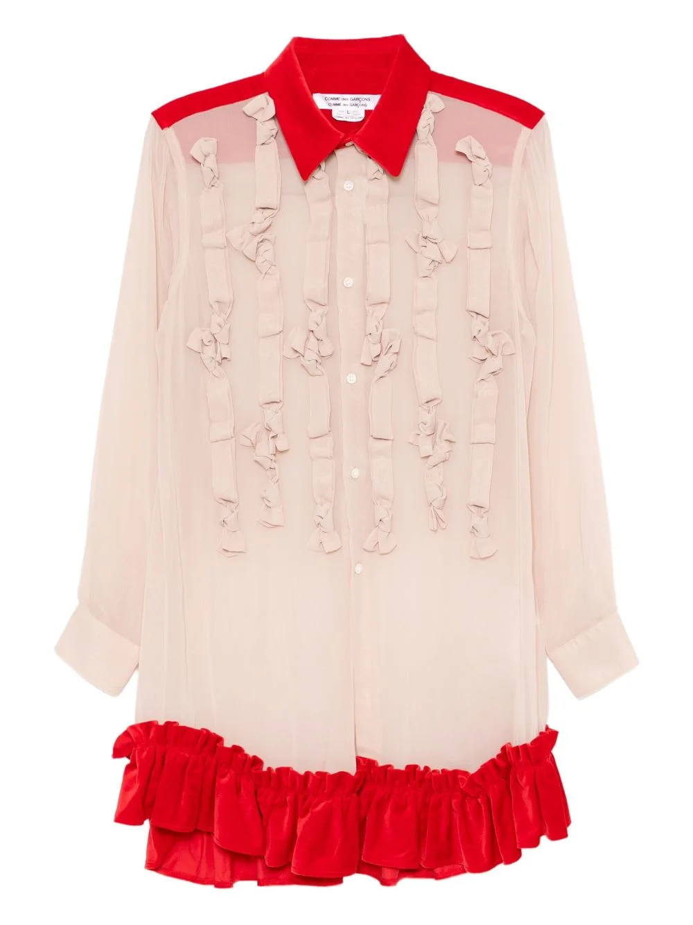 raffled long-sleeves blouses Highlights - Beige - Front button fastening - Buttoned cuffs Imported Composition Polyester 100% Washing instructions Dry Clean Only