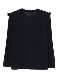 ribbon embellished knitwear Highlights - Navy blue - Ribbon embellishment - Round neck - Long sleeves Imported Composition Wool 100% Washing instructions Do Not Wash/Do Not Dry Clean