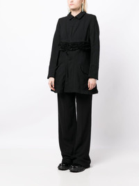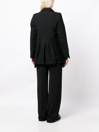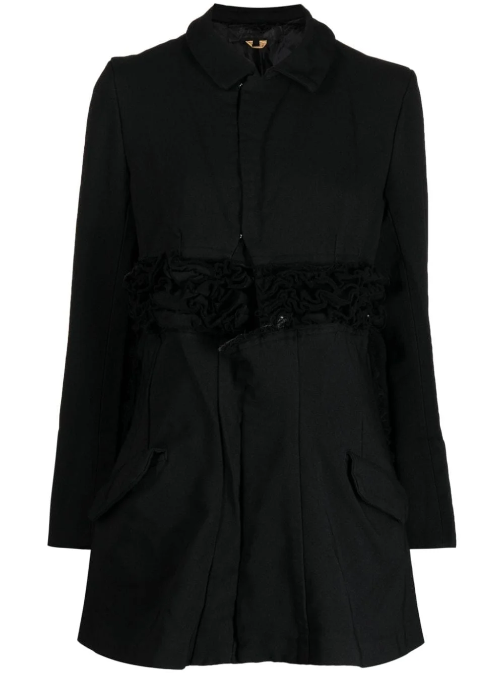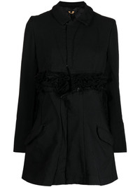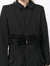 ripped ruffled bomber jacket Highlights - Black - Ruffled detailing - Ripped detailing - Spread collar - Concealed front fastening - Two side flap pockets - Long sleeves - Straight hem Imported Composition Outer: Polyester 100% Lining: Polyester 100% SIZE & FIT Model measurements Height 5 ft 9 in(1.76 m) Bust/Chest 31.1 in(79 cm) Hips 35.03 in(89 cm) Waist 24.4 in(62 cm) FittingInformation Designed to be unstructured, offering a loose fit throughout The internal shoulder pads offer a structured shape Made from a midweight non-stretch fabric This piece fits true to size – take your usual size