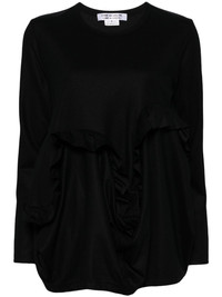 ruffle T-shirt Highlights - Black - Wool blend - Ruffled detailing - Round neck - Long sleeves - Curved hem Imported Composition Wool 56%, Polyester 38%, Nylon 6%