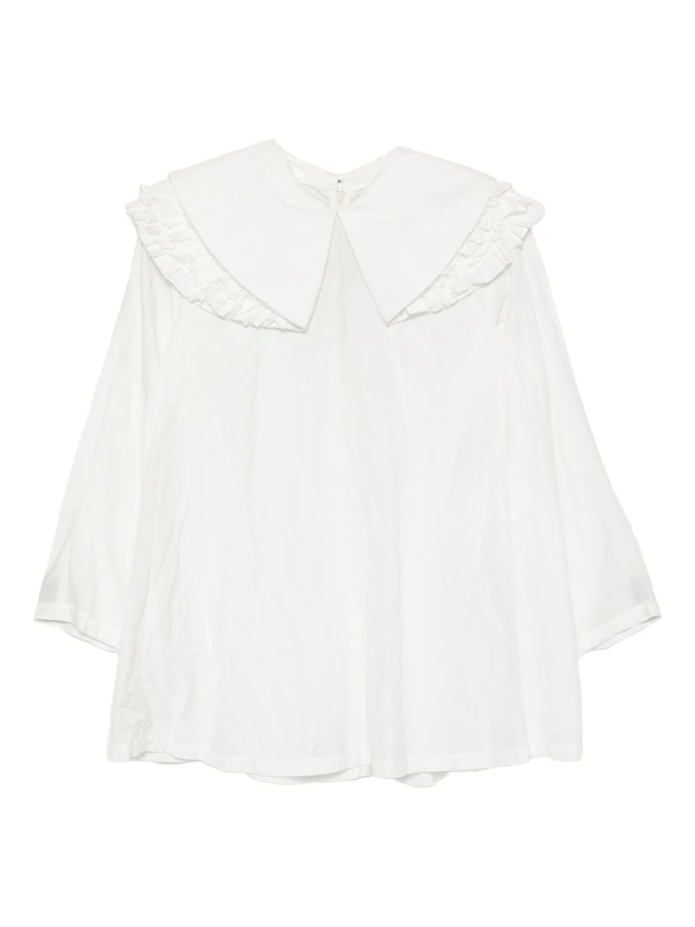 ruffled blouse Highlights - White - Concealed rear hook and zip fastening - Large peter pan collar - Long sleeves Imported Composition Polyester 100% Washing instructions Hand Wash