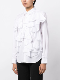 ruffled buttoned cotton shirt Highlights - Chalk white - Cotton - Fully ruffled - Classic collar - Front button fastening - Shirt sleeves - Curved hem Imported Composition Cotton 100% SIZE & FIT Model measurements Height 5 ft 10 in(1.77 m) Bust/Chest 31.49 in(80 cm) Hips 35.43 in(90 cm) Waist 25.19 in(64 cm) FittingInformation Designed to be unstructured, offering a loose fit throughout Made from a midweight non-stretch fabric This piece fits true to size – take your usual size Washing instructions Hand Wash