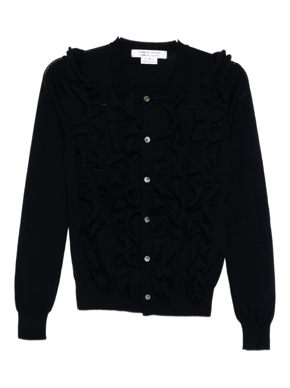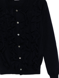 ruffled cardigan Highlights - Dark blue - Front button fastening - Crew neck - Ribbed cuffs and hem - Long sleeves Imported Composition Wool 100% Washing instructions Dry Clean Only