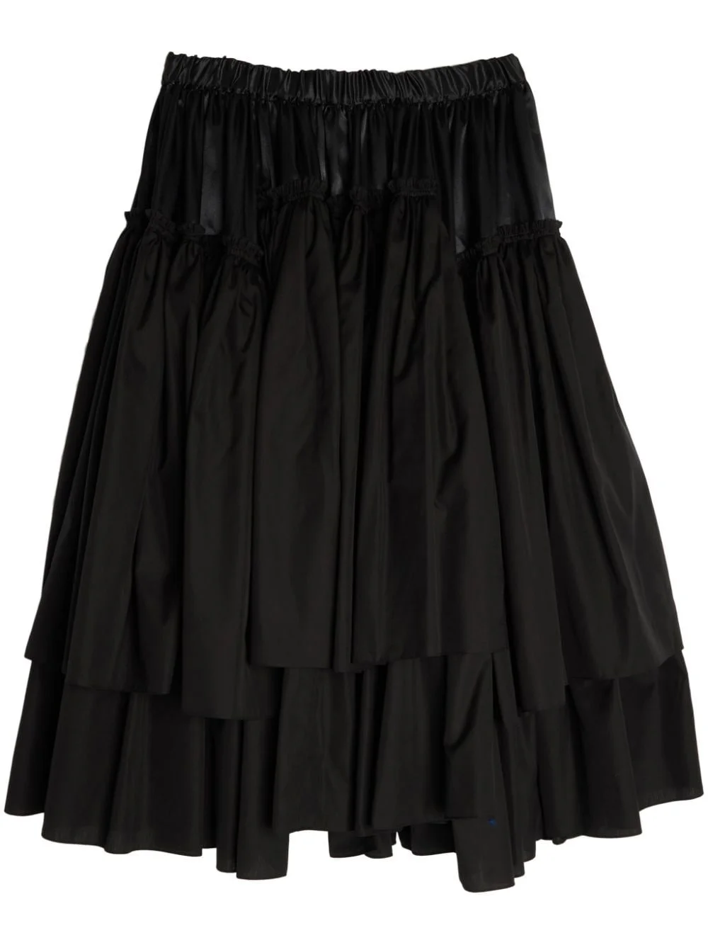 ruffled cotton satin skirt Highlights - Black - Satin weave - Ruffled detailing - Mid-rise - Elasticated waistband - Tiered skirt - Below-knee length Imported Composition Polyester 100%