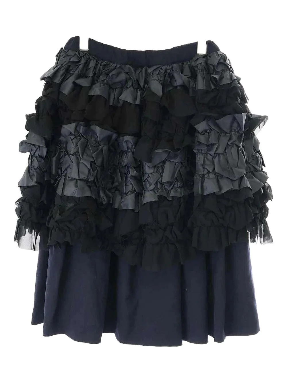 ruffled skirt Highlights - Black - Ruffled detailing - Elasticated waistband - Tiered design - Knee length - Layered design Imported Composition Wool 100%, Polyester 100% Washing instructions Read Manufacturer Guidelines