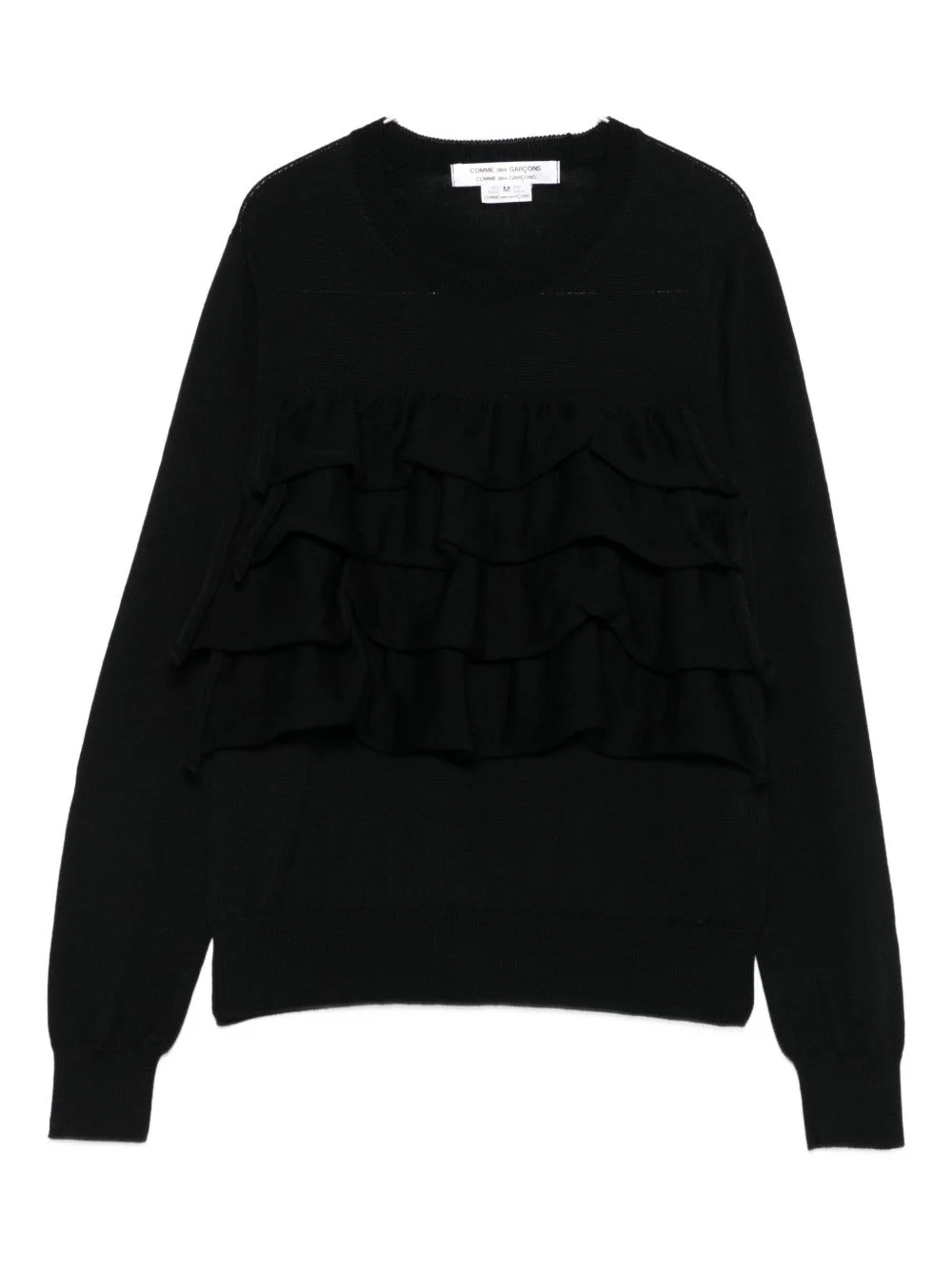 ruffled sweater Highlights - Black - Wool - Layered ruffles - Round neck - Long sleeves - Fine knit Imported Composition Wool 100% Washing instructions Read Manufacturer Guidelines