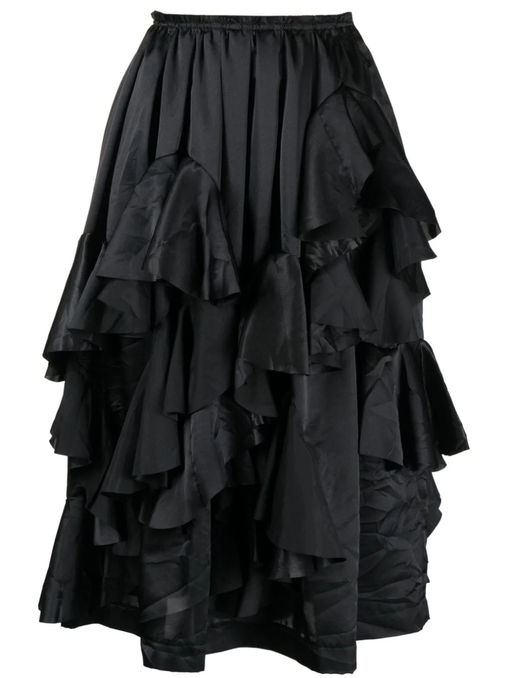 satin ruffled midi skirt
