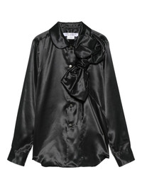 satin shirt Highlights - Black - Bow embellishment - Button front fastening Imported Composition Polyester 100% Washing instructions Read Manufacturer Guidelines