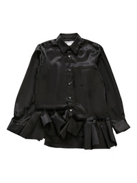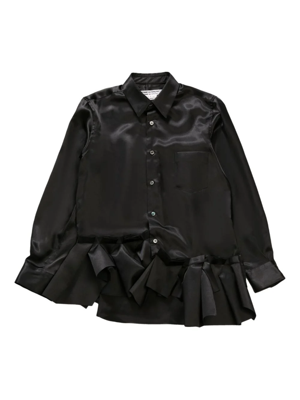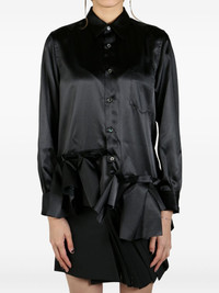 satin shirt Highlights - Black - Front button fastening - Long sleeves - Ruffled trim Imported Composition Polyester 100%