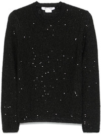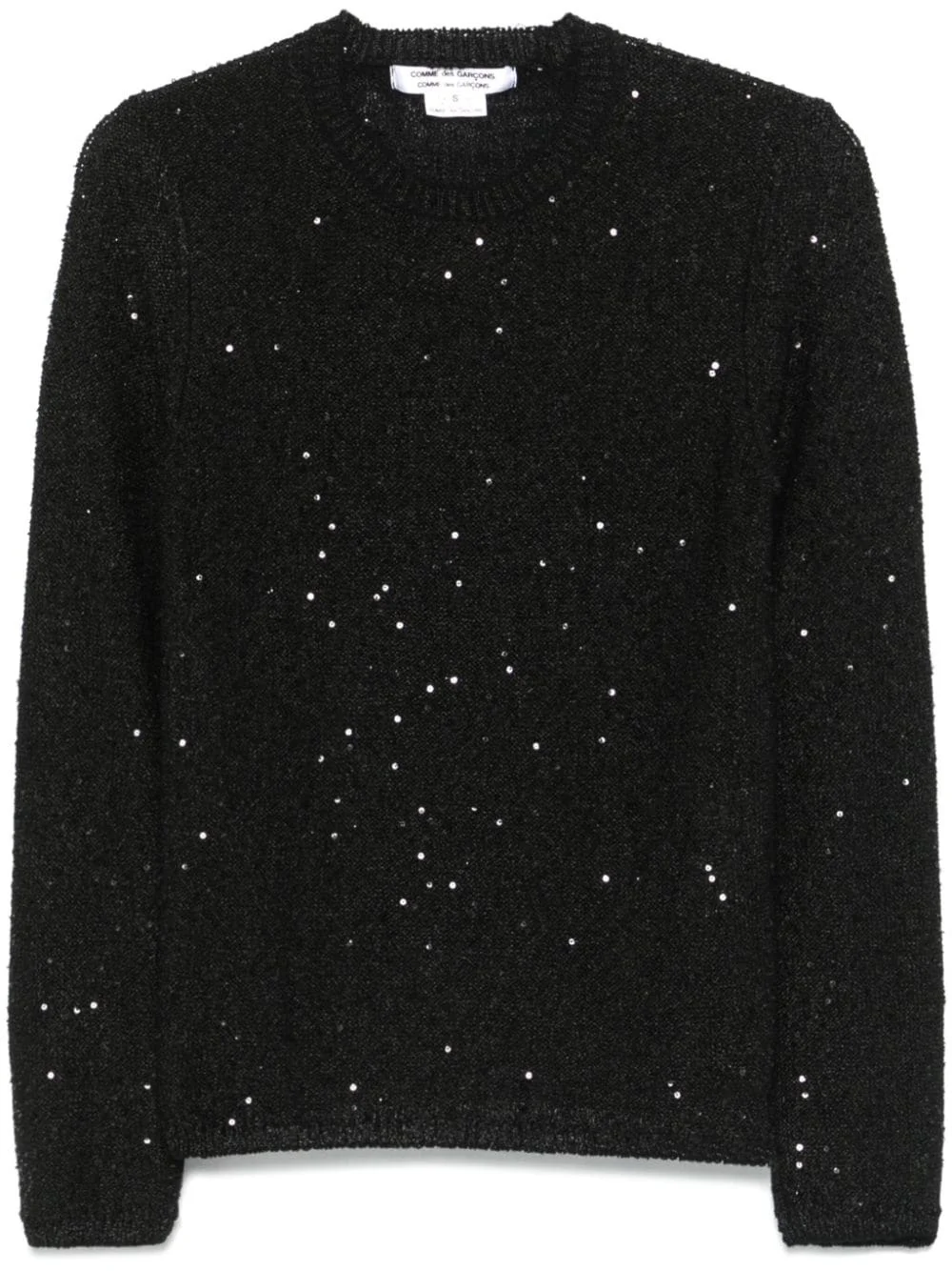 sequin-embellished sweater Highlights - Black - Knitted construction - Sequin embellishment - Crew neck - Long sleeves - Ribbed cuffs and hem - Straight hem Imported Composition Polyester 75%, Wool 25% SIZE & FIT Model measurements Height 5 ft 9 in(1.75 m) Bust/Chest 31.88 in(81 cm) Hips 34.64 in(88 cm) Waist 24.01 in(61 cm) FittingInformation Designed for a relaxed fit, this piece allows for comfort and movement when worn Made with a midweight knit, this piece offers some stretch