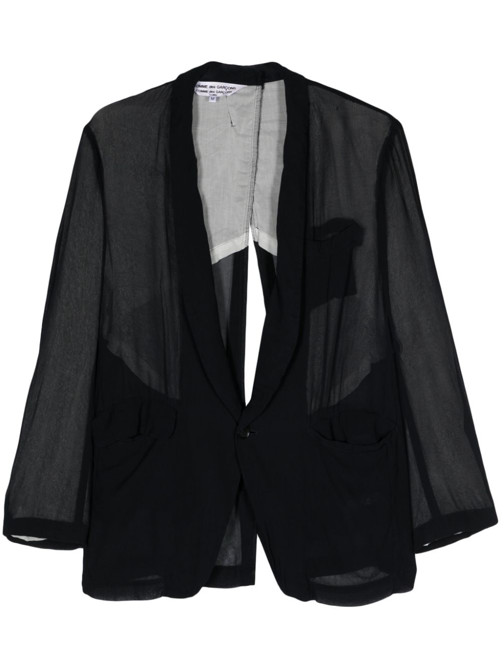 deconstructed single-breasted blazer Highlights - Black - Crepe texture - Deconstructed design - Shawl lapels - Front button fastening - Long sleeves - Buttoned cuffs - Two front flap pockets - Open back - Straight hem Imported Composition Lining: Polyester 100% Outer: Cupro 100%