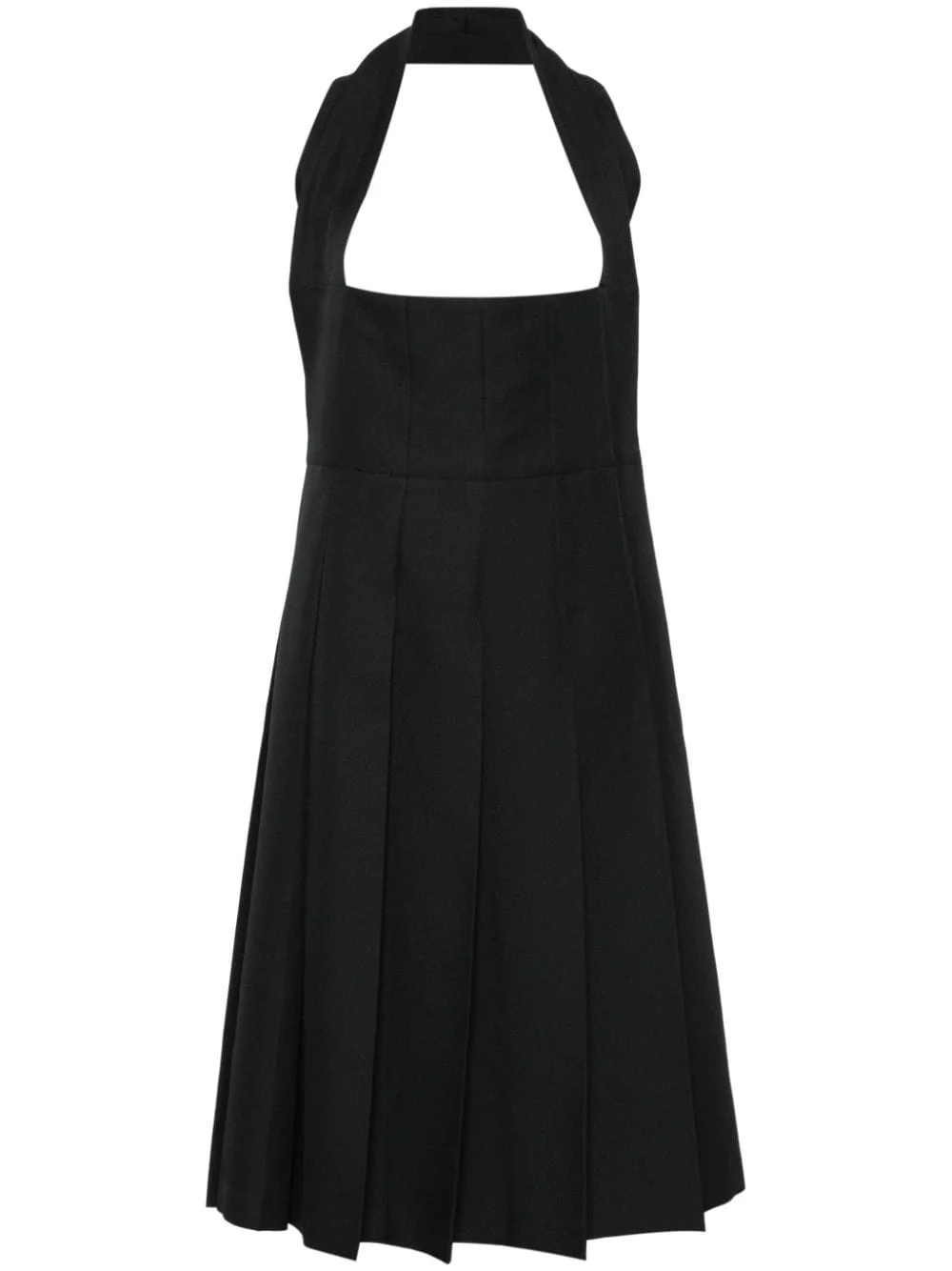 pleated midi dress Highlights - Black - Interlock twill weave - Concealed rear zip fastening - Square neck - Dart detailing - Cap sleeves - Open back - Pleat detailing - Two side slit pockets - Unlined - Straight hem - Mid-length Imported Composition Polyester 100% SIZE & FIT Model measurements Height 5 ft 10 in(1.77 m) Bust/Chest 32.28 in(82 cm) Hips 35.03 in(89 cm) Waist 25.19 in(64 cm) FittingInformation Designed for a close fit at the chest and waist with a loose fit at the hip Made from a midweight non-stretch fabric