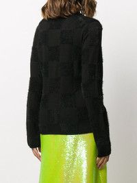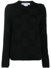 textured square knit jumper black wool blend crew neck long sleeves straight hem Imported Composition Wool 52%, Nylon 48% SIZE & FIT Model measurements Height 5 ft 9 in(1.74 m) Bust/Chest 32.28 in(82 cm) Hips 35.82 in(91 cm) Waist 24.01 in(61 cm) FittingInformation This piece fits true to size. We recommend you get your regular size Cut for a relaxed fit Made with a mid-weight fabric Washing instructions Dry Clean Only