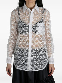 sheer lace shirt Highlights - White - Front button fastening - Chest patch pocket - Buttoned cuffs - Curved hem Imported Composition Cotton 56%, Nylon 44%