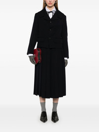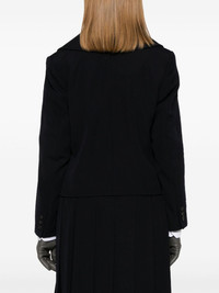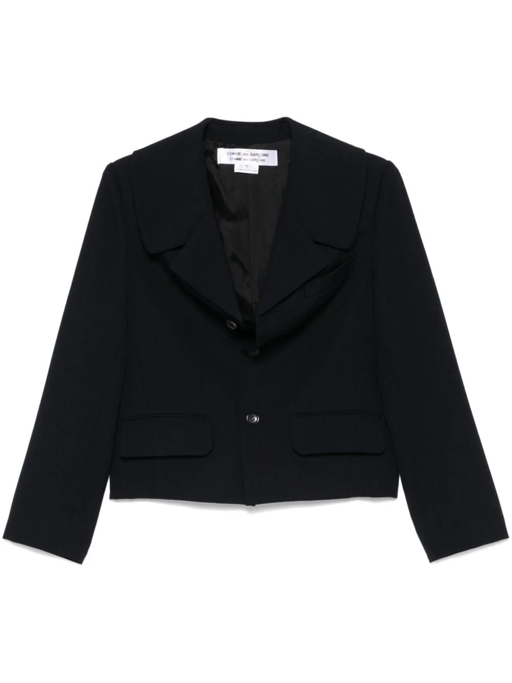 wool blazer Highlights - Oxford blue - Wool - Twill weave - Front button fastening - Wide notch lapels - Long sleeves - Buttoned cuffs - Chest welt pocket - Two front flap pockets - Italian rear vents - Cropped - Full lining - Straight hem Imported Composition Outer: Wool 100% Lining: Cupro 100% SIZE & FIT Model measurements Height 5 ft 9 in(1.75 m) Bust/Chest 31.88 in(81 cm) Hips 34.64 in(88 cm) Waist 24.01 in(61 cm) FittingInformation Designed for a slim fit that sits just away from the body offering a close yet comfortable fit The internal shoulder pads offer a structured shape Made from a midweight non-stretch fabric