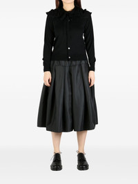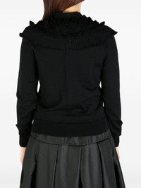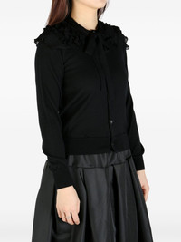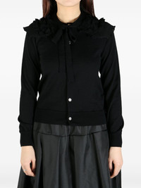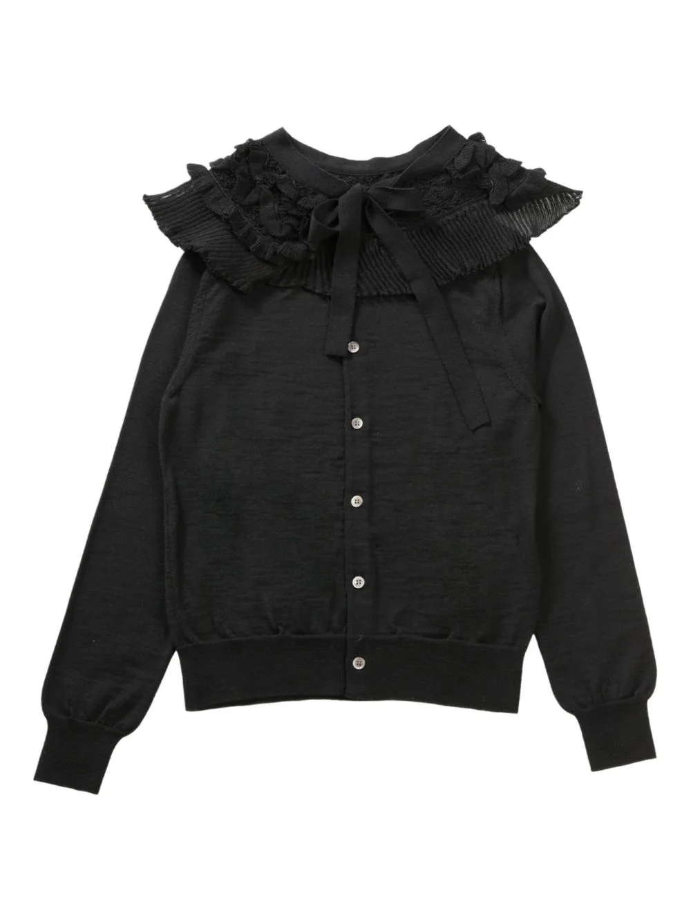 wool cardigan Highlights - Black - Front button fastening - Top tie fastening - Long sleeves - Ruffle collar Imported Composition Wool 100%