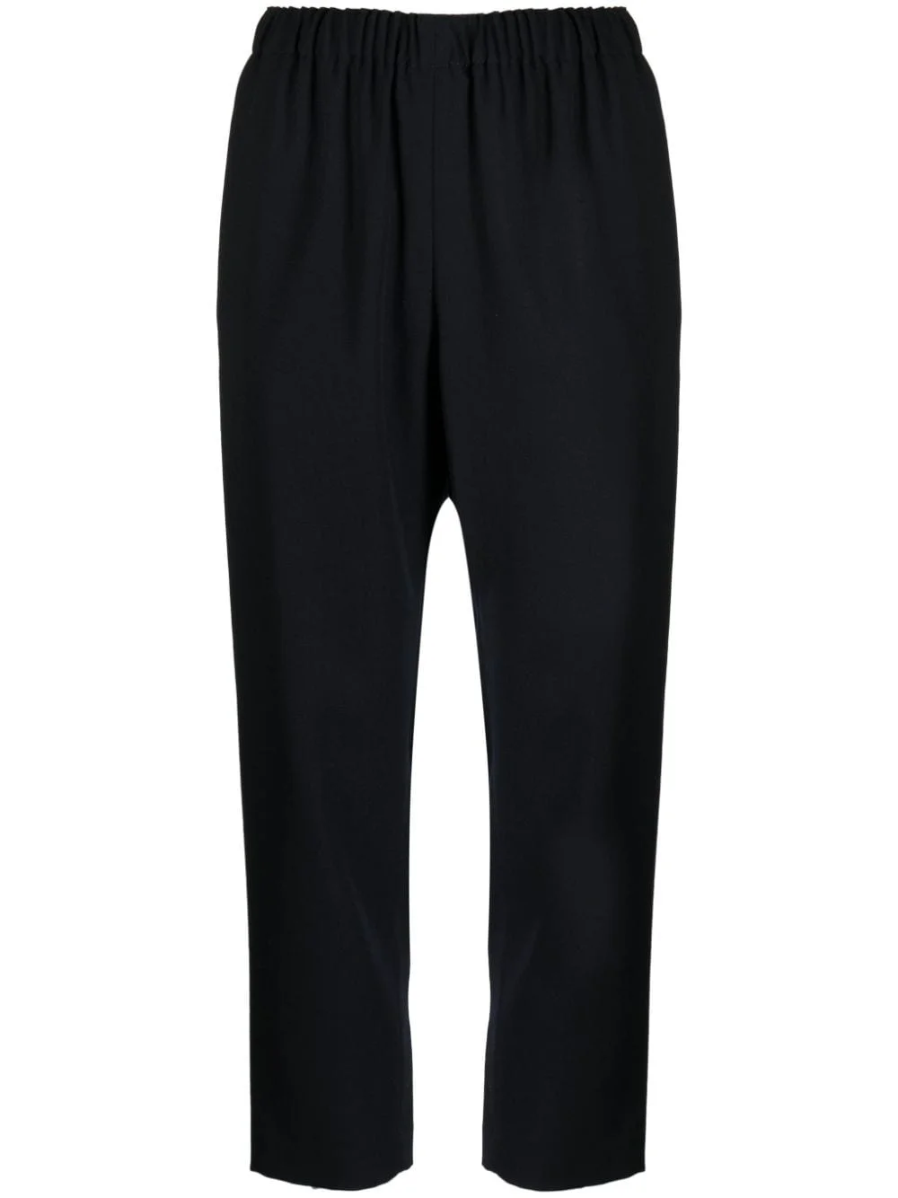 wool cropped trousers Highlights - Navy blue - Wool - Knitted construction - Elasticated waistband - Cropped leg Imported Composition Wool 100% SIZE & FIT Model measurements Height 5 ft 10 in(1.77 m) Bust/Chest 28.74 in(73 cm) Hips 35.82 in(91 cm) Waist 24.4 in(62 cm) FittingInformation Designed for a tapered fit, these trousers allow for a close fit at the waist and a loose unrestricted fit over the leg with a closer fit towards the ankle Adjust this piece’s waistband to your preference using the drawstring Made from a midweight non-stretch fabric This piece fits true to size – take your usual size Washing instructions Dry Clean Only