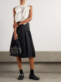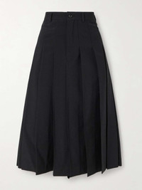 EDITORS'NOTES Comme des Garcons Comme des Garcons' culottes closely resemble a skirt at first glance - the wide legs are sharply pleated through the front, adding movement and texture. Tailored from wool, they sit high on the waist and hit below the knees. SIZE & FIT Model measurements: - Size 1 = XS, 2 = S, 3 = M, 4 = L and 5 = XL - Fits true to size, however those who are between sizes should take the smaller size - High-rise, cut for a loose fit - Mid-weight, non-stretchy fabric - Model is 180cm/ 5'11" and is wearing the designer's size 2 - Bust: 85cm/ 33.5" - Waist: 62cm/ 24.5" - Hip: 88cm/ 34.5" DETAILS & CARE - Black wool - Button and concealed zip fastening at front - 100% wool - Dry clean