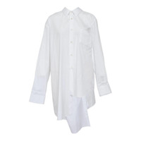 300049290WHT-XS / A5GP-B014-051/00/WHITE - Classic point collar - Front button closure - Long sleeves with barrel cuffs - Asymmetrical curved hem - Chest patch pocket - Oversized relaxed fit - Premium cotton poplin construction COMME des GARCONS Otton Broad Shirt delivers avant-garde minimalism with architectural silhouette and contemporary edge. Crafted from premium cotton poplin in crisp white, featuring an asymmetrical hem that creates dynamic movement and visual interest. The oversized proportions and deconstructed tailoring embody the brand's signature conceptual approach to modern shirting.